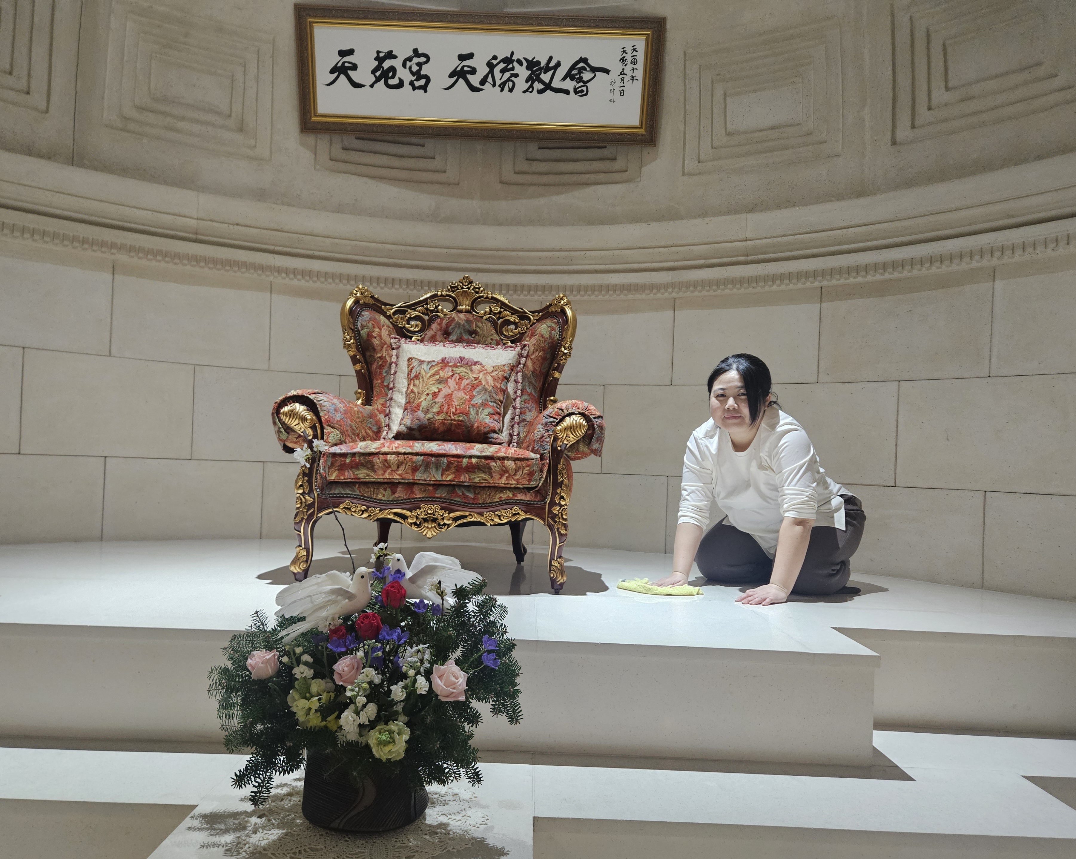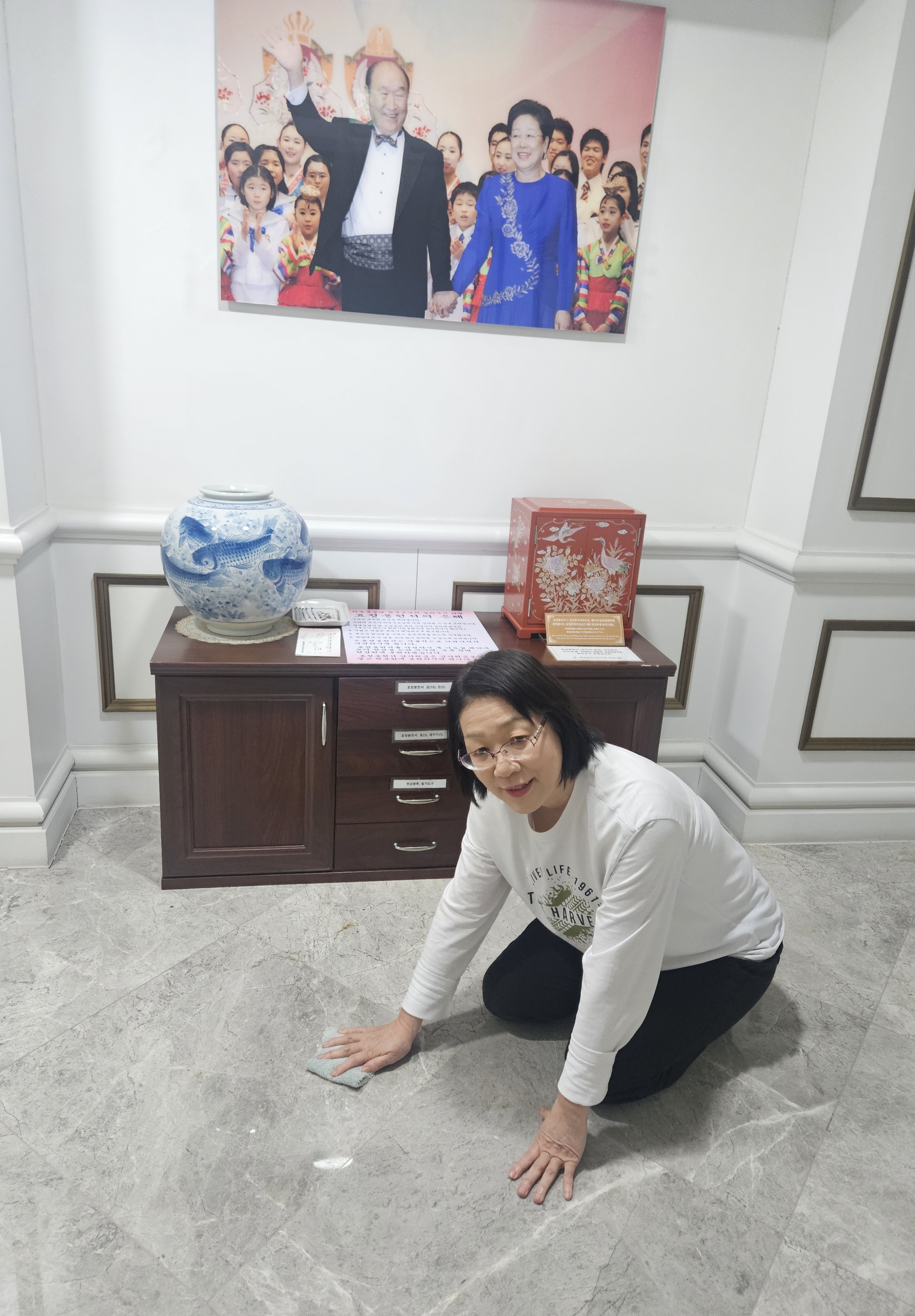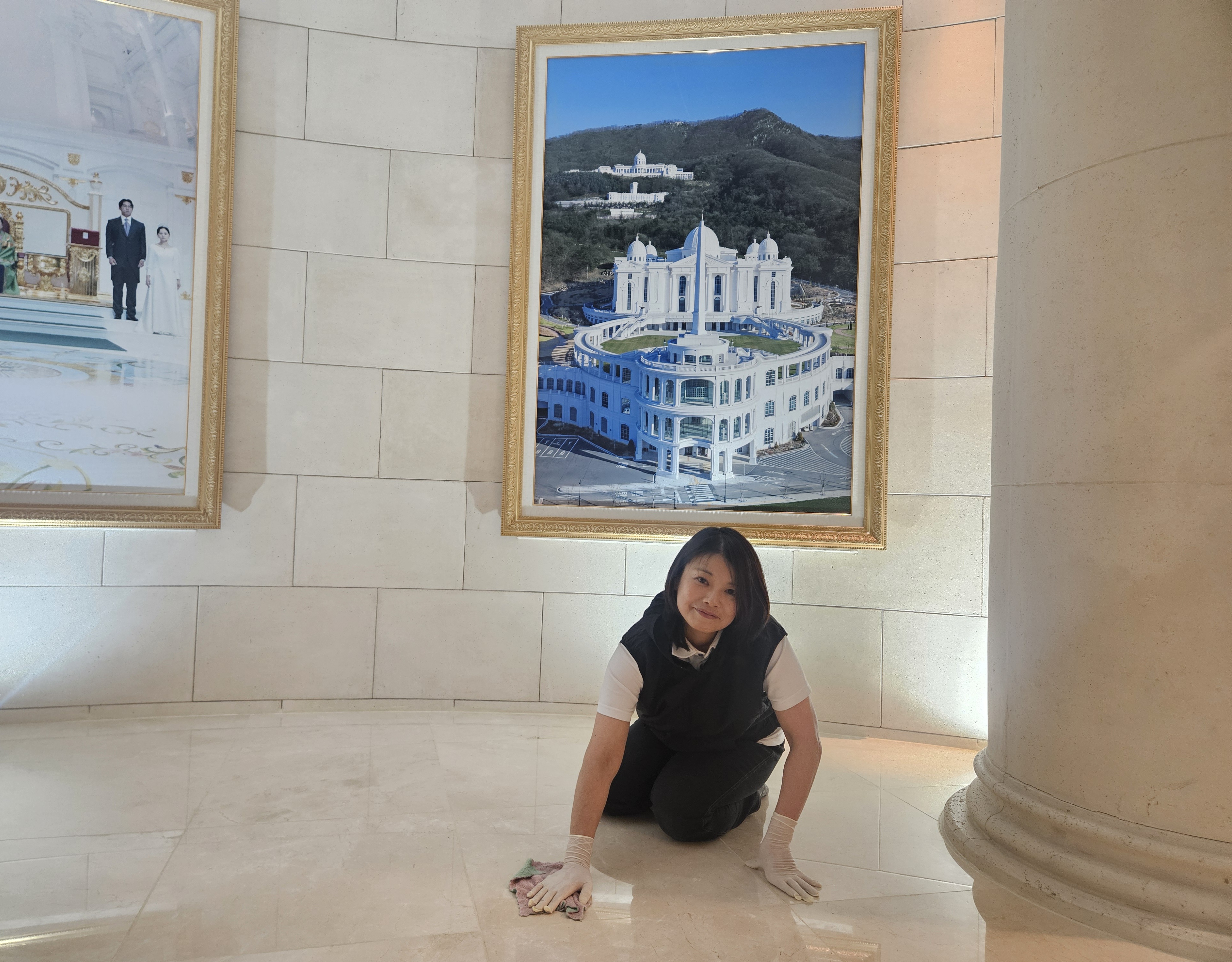 2층 공관 특별기도실에서 경배, 가정맹세 4, "신종족메시아 훈독교재" 훈독, 기도를 드리고 공간특별기도실과 접견실, 복도,