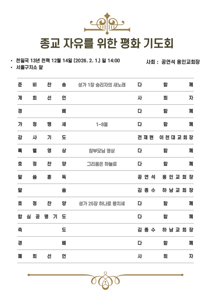 [종교 자유를 위한 평화기도회 생중계 안내]