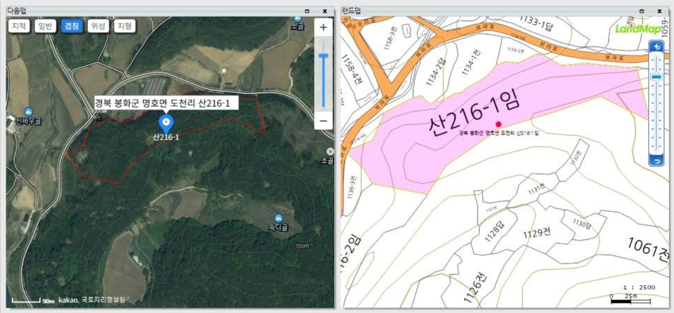 ▶ 토지지번 : 봉화군 명호면 도천리 산216-1