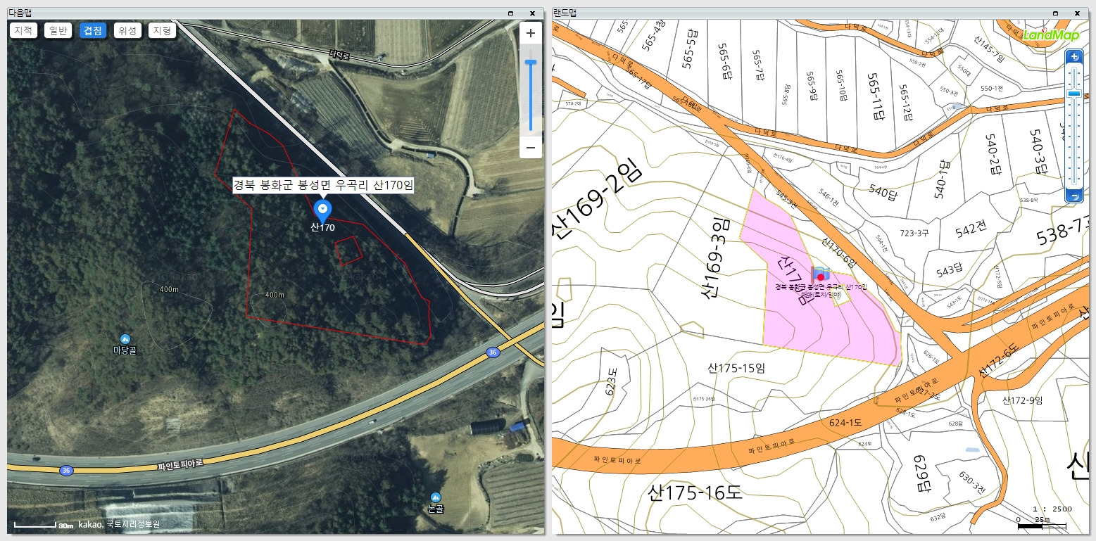 ▶ 토지지번 : 봉화군 봉성면 우곡리 산170
