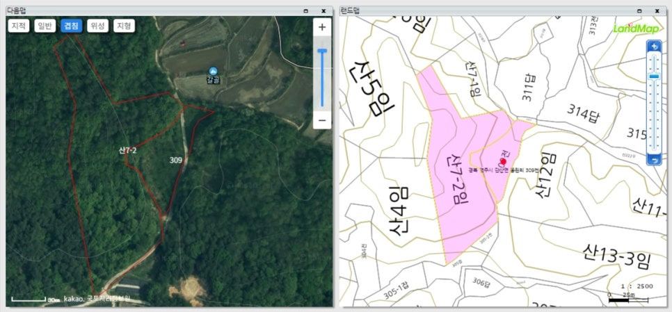 ▶ 토지지번 : 영주시 단산면 동원리 309, 산7-2