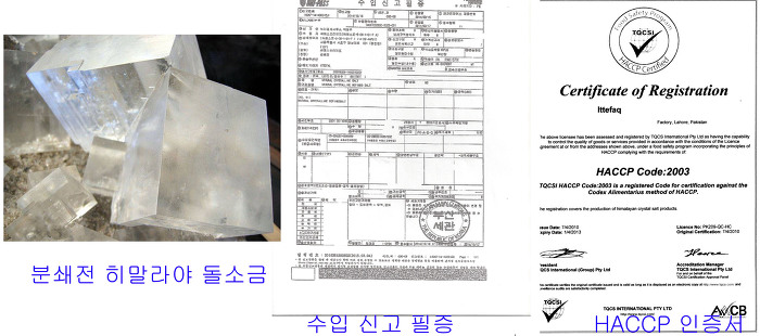 ● 히말라야 돌소금의 장점 1. 약 1억년 전 원시자연의 바닷물로 만들어진 깨끗한 천연소금입니다. 어떠한 첨가제도 넣지 않았습니다. 어떠한 정제과정도 거치지 않았습니다. 천연바위소금을 사용하기 편리하게 분쇄만 한 소금입니다. HACCP, ISO9001인증