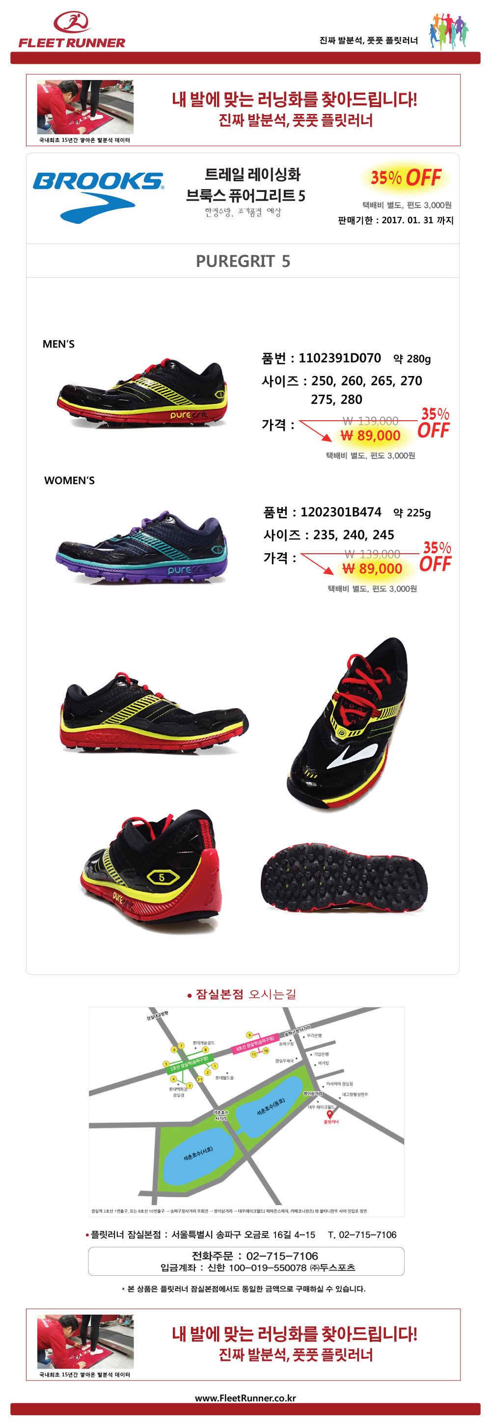 [공동구매] 트레일 러닝화 브룩스 퓨어그리트 35% 특별세일 89,000원