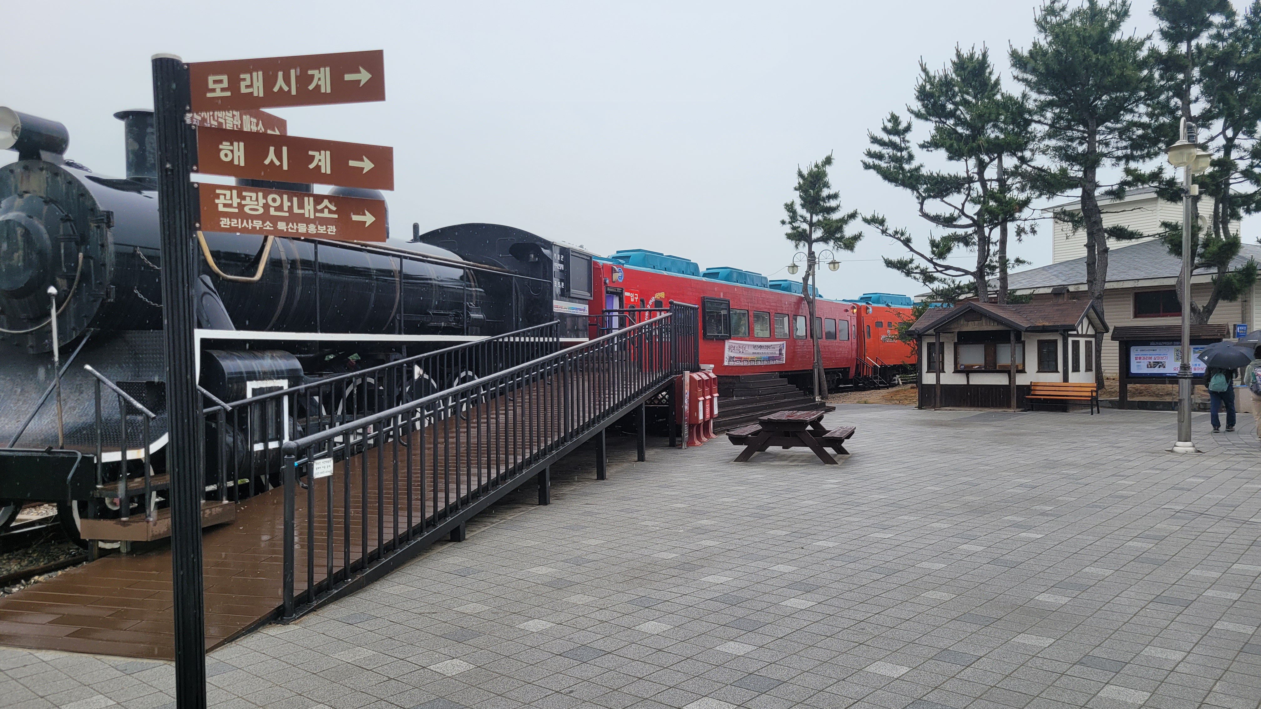 목적지 정동진 모래시계공원 주차장에 차를 세우자 가는 빗줄기가 우리를 맞이하고 있네요 ^^