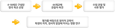 창의적 교육의 일환으로 각 학교마다 진행되고 있는 교육 과목들은 그 구성이 다양합니다. 학교 교과목에 문화예술교육을 접목시키기도 하고, 문화예술교육 통해서 타 교과목 학습 스킬 향상에 도움을 주기도 합니다. 이 중 연구에서 다룬 대표적인 창의적 교육 사례 몇 가지를 살펴보도록 하겠습니다.