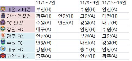 다음주 대전의 우승확정을 위해선 같은 시간대 열리는 안산-광주전에서 광주가 안산의 승리를 저지해주면 됩니다.
