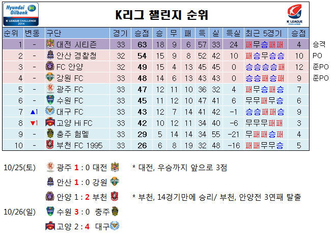 한편, 안양이 홈에서 뜻밖에 부천에게 패배하면서, 안양도 승격PO권 잔류를 100% 장담하기 힘든 상황이 되었습니다.