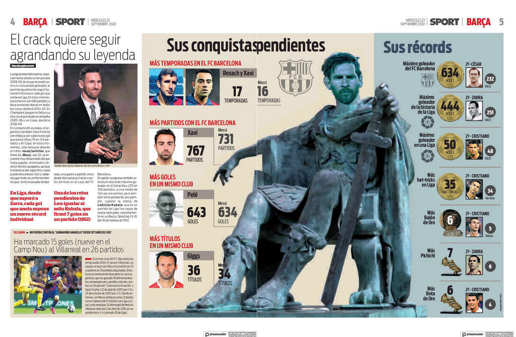 바르셀로나 역대 최다골 634골 (2위 세사르 232골)