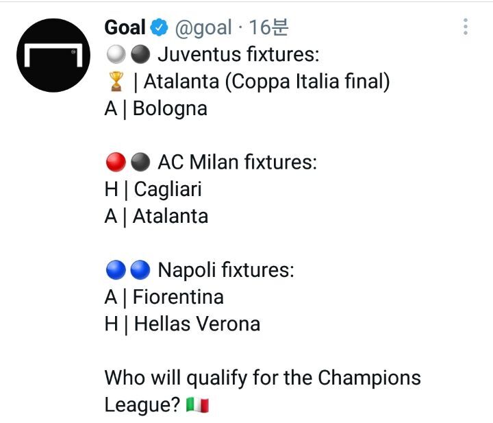 [스크랩] 세리아 A 챔스권 순위와 경기일정 작성자축신 노이어|작성시간21.05.16|조회수32 목록 댓글 0 글자크기 작게가 글자크기 크게가 https://twitter.com/goal/status/1393659042124476426?s=19 다음검색 스크랩 원문 : 樂soccer 현재 게시글 추가 기능 열기 북마크 공유하기 신고 센터로 신고 댓글 댓글 0 댓글쓰기 답글쓰기 댓글 리스트