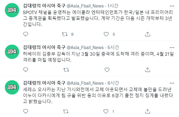 [스크랩] 김종부 감독이 지난 3월 30일 중국에 도착해 격리 중 작성자축신 노이어|작성시간22.04.14|조회수38 목록 댓글 0 글자크기 작게가 글자크기 크게가 https://twitter.com/Asia_Fball_News 다음검색 스크랩 원문 : 樂soccer 현재 게시글 추가 기능 열기 북마크 공유하기 신고 센터로 신고 댓글 댓글 0 댓글쓰기 답글쓰기 댓글 리스트