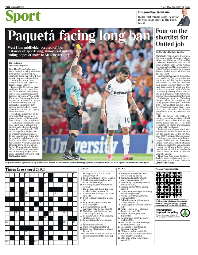 맨유는 텐 하흐를 경질할 경우 4명의 감독 후보 명단을 작성했다. 이번 주 첼시를 떠나 올드 트래포드로의 이적을 희망하는 마우리시오 포체티노는 토마스 투헬, 키어런 맥케나, 토마스 프랑크와 함께 후보 명단에 이름을 올렸다.