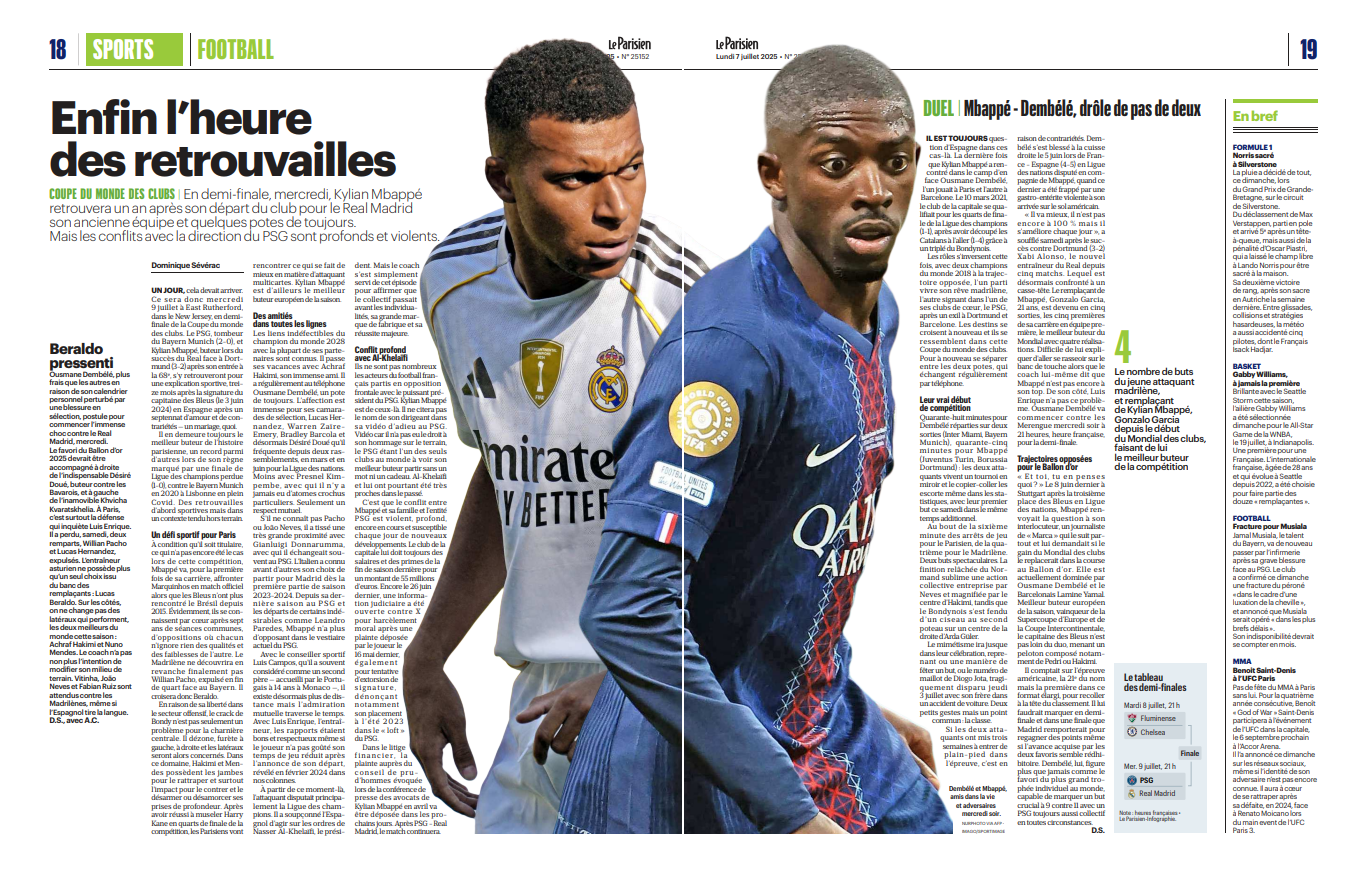 재정 분쟁과 관련하여 지난 4월 음바페 변호사가 기자회견에서 언급한 산업재판소에 대한 제소는 며칠 내로 접수될 예정이다. PSG와 레알 마드리드 경기 이후에도 경기는 계속된다.
