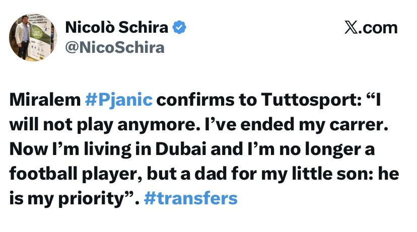[스크랩] 미랄렘 피야니치 은퇴 작성자민방위공병 (해리 케인)|작성시간25.12.31|조회수60 목록 댓글 0 글자크기 작게가 글자크기 크게가 https://x.com/nicoschira/status/2005895468203856142?s=46 다음검색 스크랩 원문 : 樂soccer 현재 게시글 추가 기능 열기 북마크 공유하기 신고 센터로 신고 댓글 댓글 0 댓글쓰기 답글쓰기 댓글 리스트
