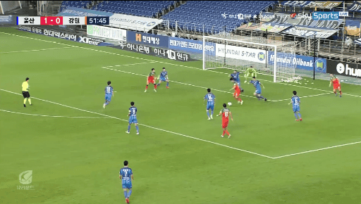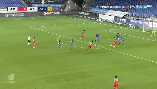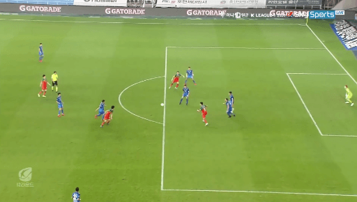 수비진의 불안한 후방빌드업. 안전하게 멀리 차내는 조현우