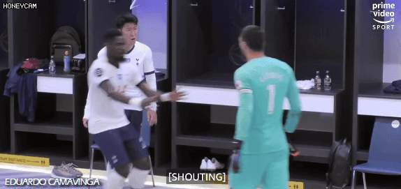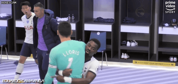 손흥민을 향해 격앙된 자세로 오는 요리스