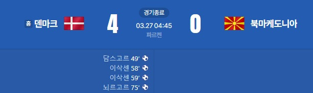 [스크랩] [2026 FIFA WorldCup UEFA Playoff Semi-Final] 덴마크 vs 북마케도니아 골장면.gif 작성자민방위공병 (해리 케인)|작성시간26.03.27|조회수36 목록 댓글 0 글자크기 작게가 글자크기 크게가 다음검색 스크랩 원문 : 樂soccer 현재 게시글 추가 기능 열기 북마크 공유하기 신고 센터로 신고 댓글 댓글 0 댓글쓰기 답글쓰기 댓글 리스트