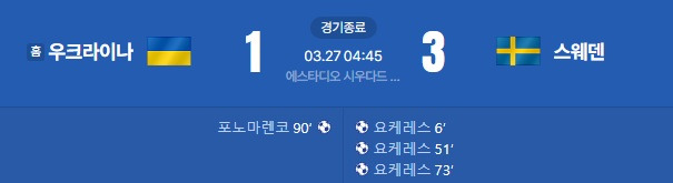 [스크랩] [2026 FIFA WorldCup UEFA Playoff Semi-Final] 우크라이나 vs 스웨덴 골장면.gif 작성자민방위공병 (해리 케인)|작성시간26.03.27|조회수39 목록 댓글 1 글자크기 작게가 글자크기 크게가 다음검색 스크랩 원문 : 樂soccer 현재 게시글 추가 기능 열기 북마크 공유하기 신고 센터로 신고 댓글 댓글 1 댓글쓰기 답글쓰기 댓글 리스트 작성자쯔위민주짱짱 | 작성시간 26.03.29 헤트츠릭 댓글 전체보기