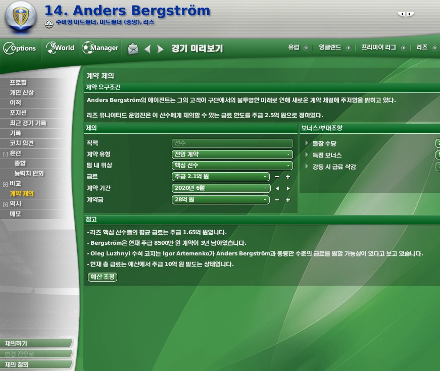 답댓글 작성자BestLife 작성자 본인 여부 작성자 작성시간 09.08.14 그거 오류인데 제의철회하고 바로 다시 제계약 제의하면 주급 바뀌어서 나와요~