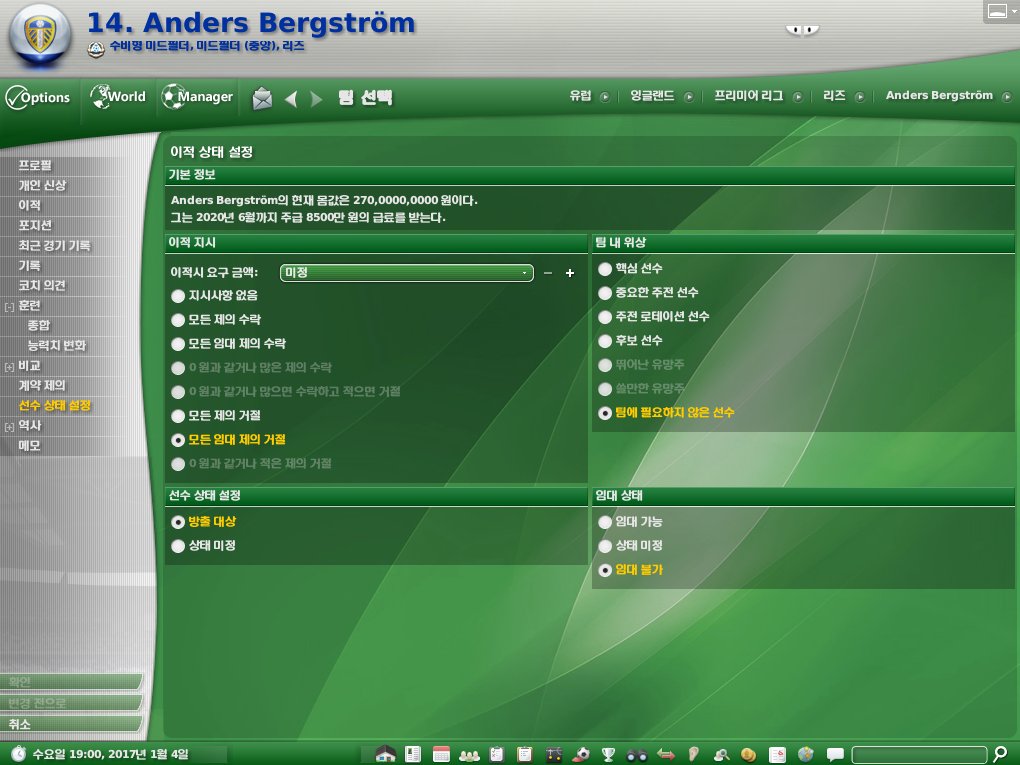 그럼 이상황에서 이적 상태를 원래대로 지시사항없음, 팀내위상도 원래대로 해놓고, 상태미정 등으로 해놓고