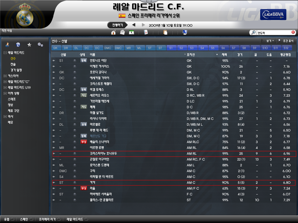 날두는 그래도 경기수는 채워주고 있지만, 카카는 주전조차 못잡고 있음...