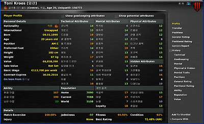 왼발이 18..ㄷㄷ..15만 되도 양발잡이인데..fm전체에서 찾아봐도 반대발이 18이상인 선수 마니 없죠..