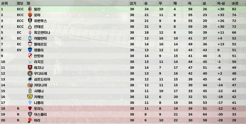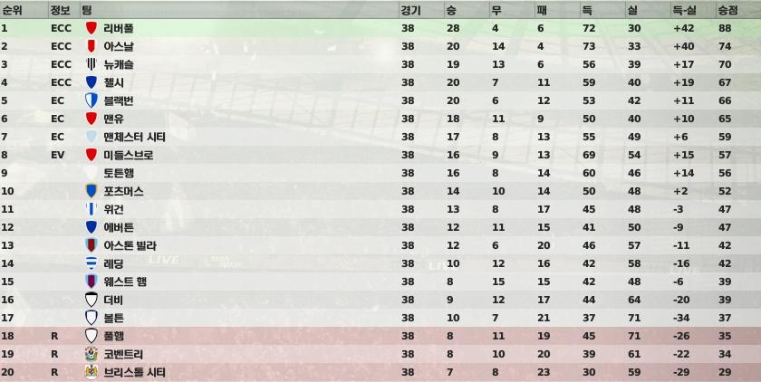 맨유의 빅4탈락이 눈에 띄네요. 뉴캐슬이 2년만에 다시 챔스리그로 나가게 되었습니다.