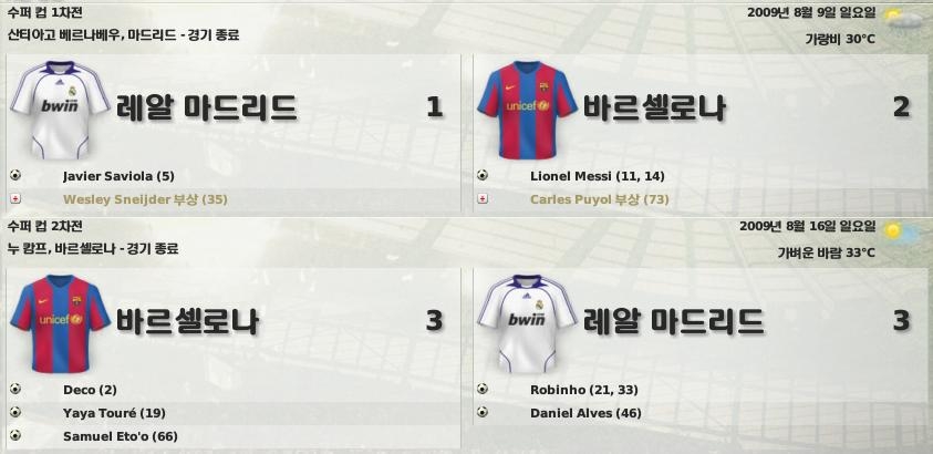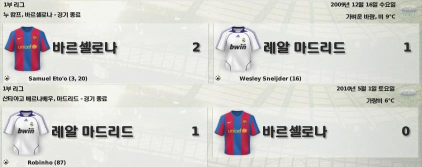 바르셀로나하고는 사이좋게 1승씩을 나눠가졌습니다.