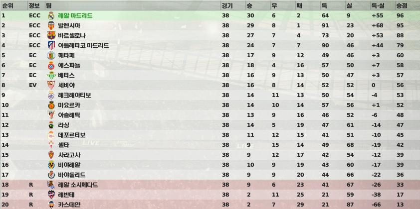 헤타페의 2년연속 5위 (상위팀들과의 승점차는 많이 나지만)가 눈에 띱니다.