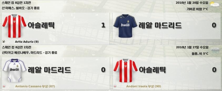 한편 순항하던 레알은 스페인컵 8강전에서 아슬레틱에게 통한의 패배를 당합니다.