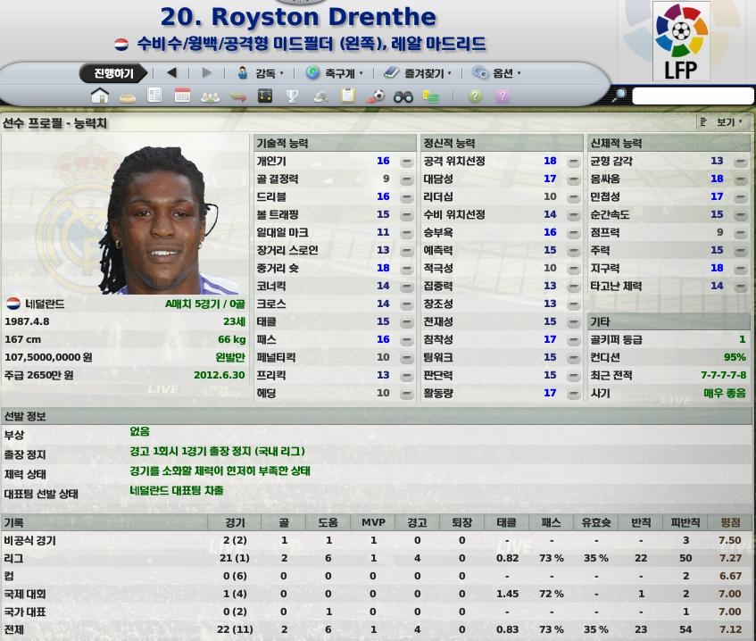 툴루즈에서 2년간의 임대생활을 마치고 반니대신 레알1군에 올라온 선수입니다.