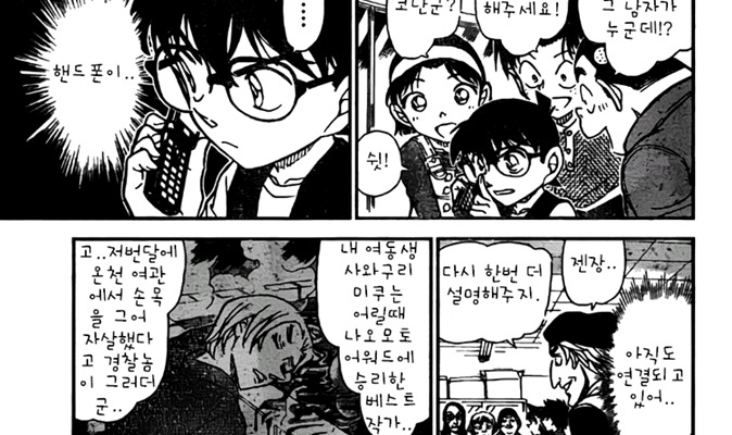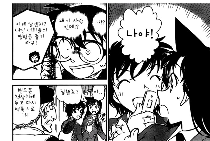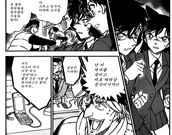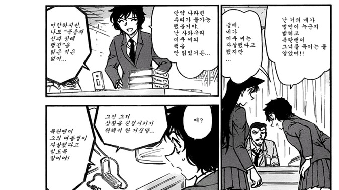 세라마스미는 은근슬쩍 통화버튼을 끄지않고 핸드폰을 책상위에 둡니다 코난이 들을수있도록