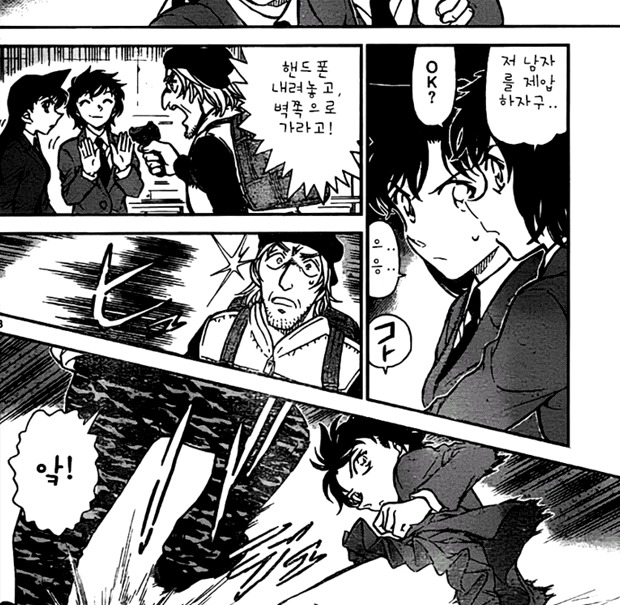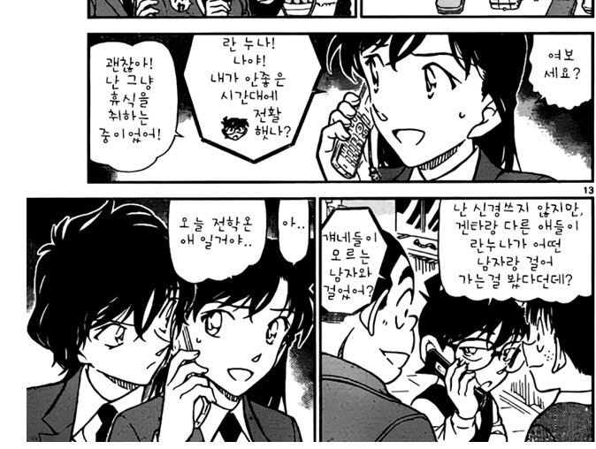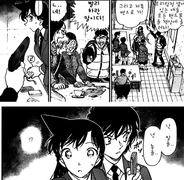 한편 세라마스미는 란의 핸드폰을 뺏아 코난과 통화를 대신합니다.