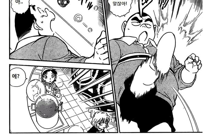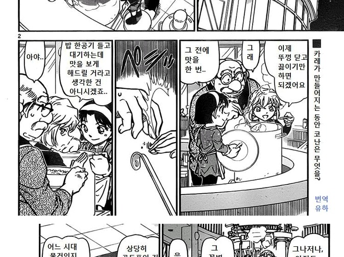코난과 그의 친구들은 브라운 박사님 집에서 같이 카레를 먹기로 합니다
