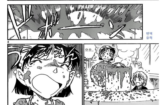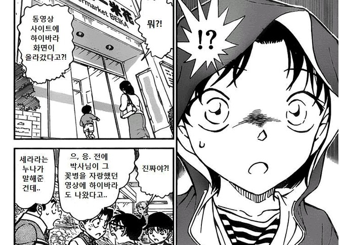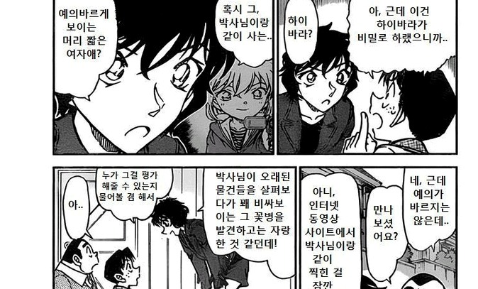 한편 코난은 동영상 사이트에, 올라오면 위험해질 하이바라의 얼굴이 올라오자 놀랍니다