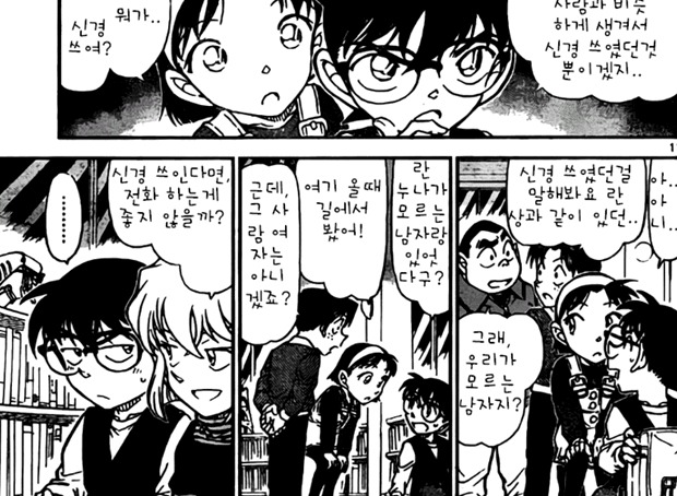 친구들로부터 란이 모르는남자와 같이 있었다는걸 듣게 된 코난