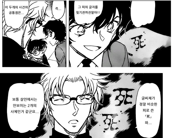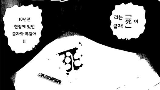 그리고 유사쿠가 10년전 해결한 사건과 비슷하게 시체옆에 죽을사 문자가 피로 써져있습니다.