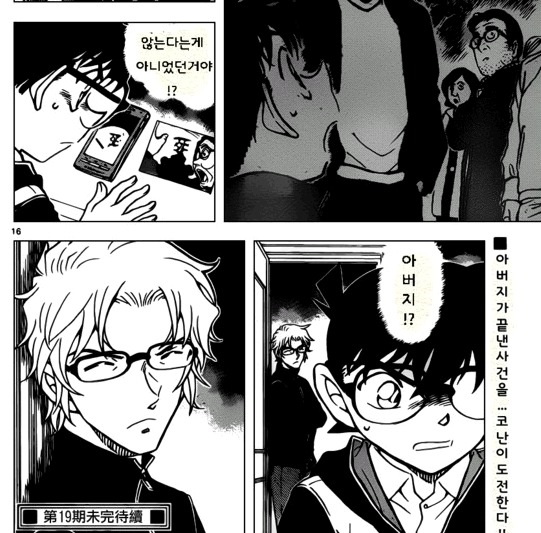 아버지에게 의문을 던지는 코난