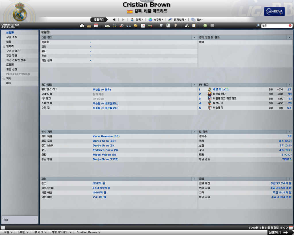 평균득점 2.2점에 평균실점 0.6점입니다. 공수균형이 갖추어져 있죠... 이 전술은 피오렌티나 리버풀 레알 아스톤빌라 등등 대부분팀에 적용괴었습니다....