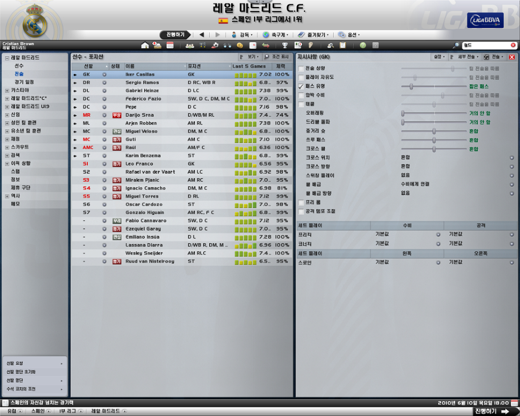 GK 걍 좋은선수 패스할때 짤은패스적용 했습니다 점유율을 높이기 위해서..... 볼배급 수비에게 연결
