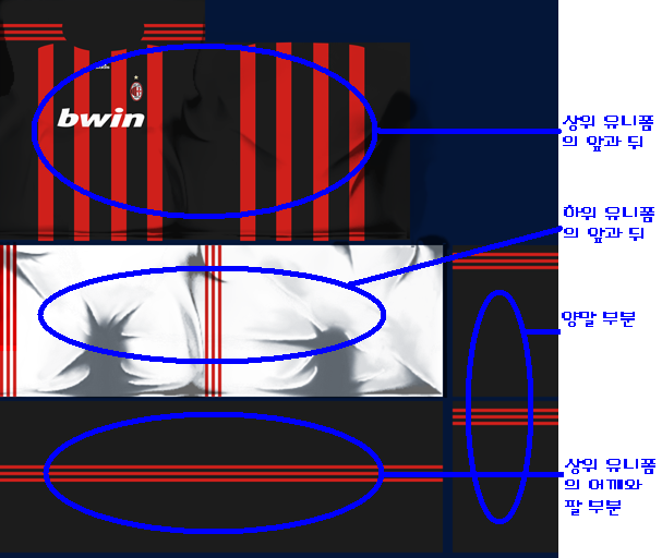 이탈리아 AC밀란 유니폼을 함 골라 봅시다.(3D 유니폼 자료는 카페 자료실에도 있습니다.)