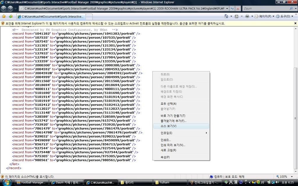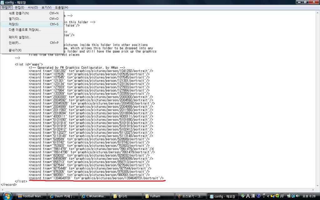 7. 소스보기를 클릭하면 메모장이 뜨는데 맨 밑에 줄에 빨간선 그은것처럼 선수 고유번호를 태그 명령어와 써주시고