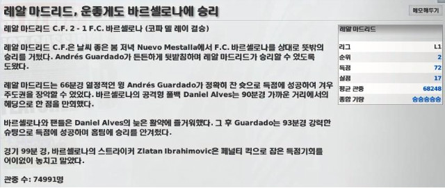 '레알 마드리드' 왼쪽 윙을 담당하는 과르다도 선수 베스트 11에 들었길래 한방!