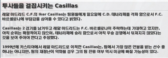 이 스크린샷을 저도 처음 보았는데, 부주장 카시야스가 매경기 마다 선전해줘서 수비쪽을 든든합니다!
