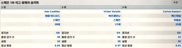 이어서 부주장 '카시야스' 선수가 올해 골키퍼 상을 타네요. 뿌듯합니다. 감독으로서....