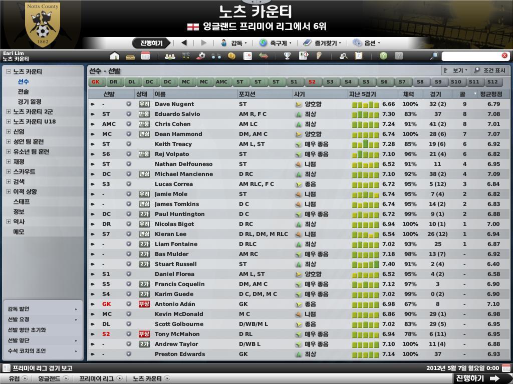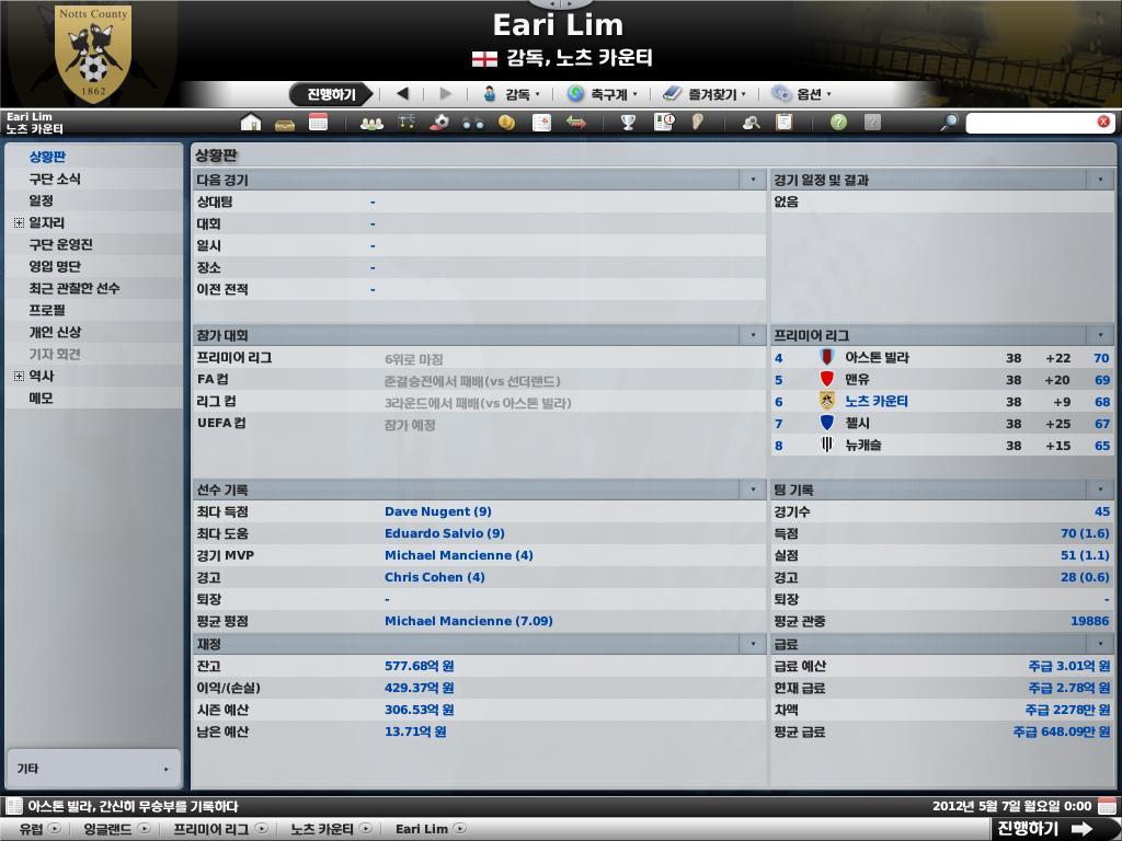 저희 노츠 카운티의 최종 성적은, 보시다시피 놀랍게도 6위에 올라 당당하게 UEFA컵 진출권을 따냈습니다.