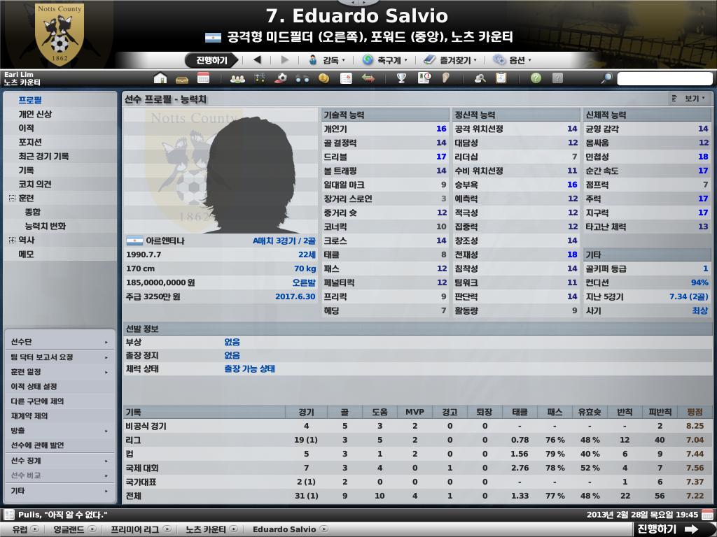 일단 저는 salvio(윙어)랑 arnar(수비), velikonja(공격)하고 풀백이랑 중미 영입할 생각 ㄷㄷㄷ -