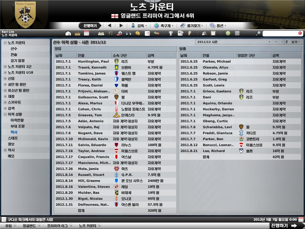 먼저 선수 이적 스샷을 보며 시즌 준비 상황을 설명 드리겠습니다.