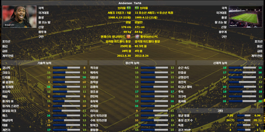 [선수 비교1: 어빌: 150/ 포텐 160 & 안데르손: 어빌: 169/포텐: 182 상태]