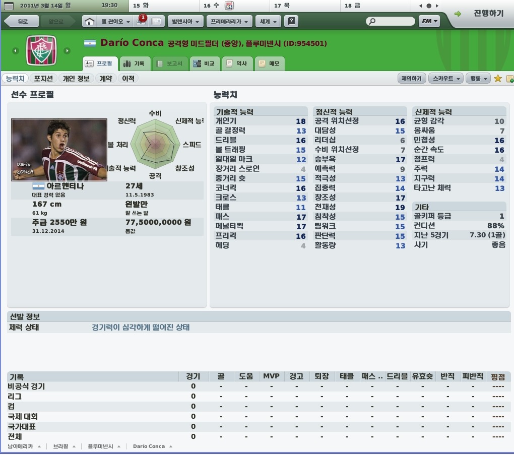 답댓글 작성자김아중 작성자 본인 여부 작성자 작성시간 10.09.11 08땐 이놈이랑 Carlos Villanueva랑 고민하다가 결국 Villanueva를 영입했기에 써본 적이 없었는데 간만에 생각이 나서 찾아봤더니 저런 능력치를 지니고 있더군요... 멘탈이 어느정도인지 에디터로 확인은 못해봤지만;;