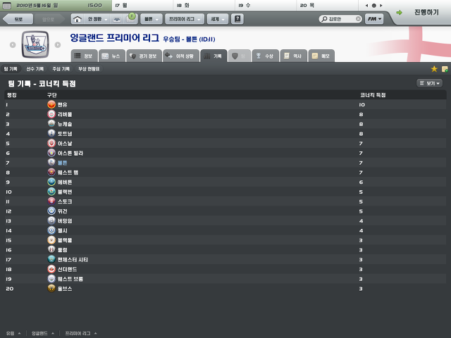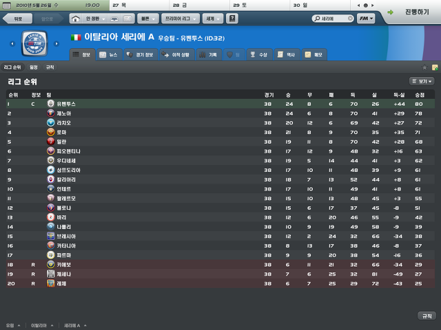 개인적으로 인테르가 10위라니 .. 꿈의 스쿼드 인테르를 10위로 떨어트린 감독이 누구야 !! 해서 보니